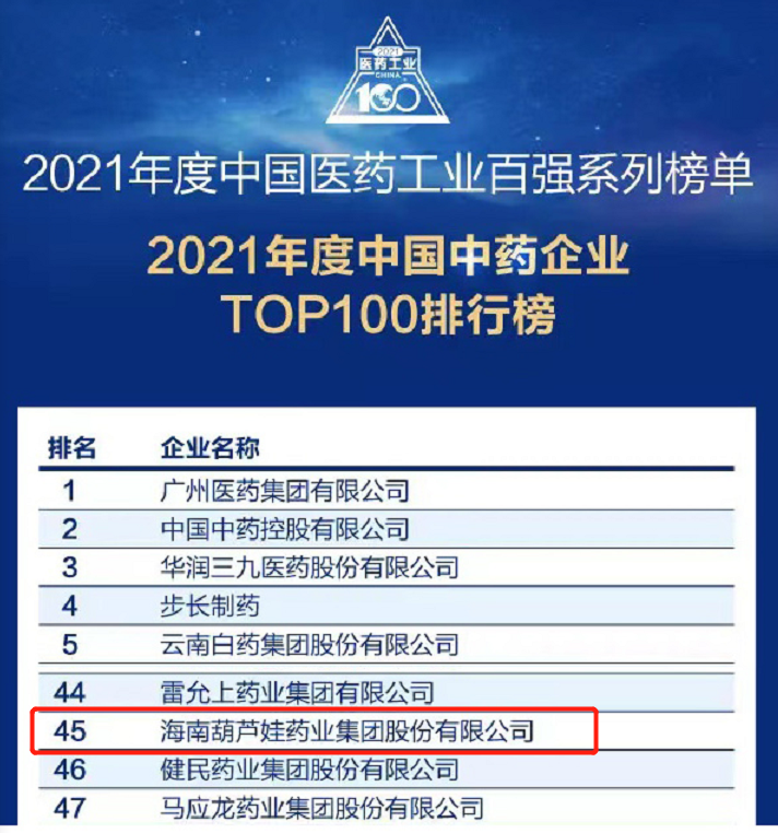 万众瞩目的2021年度中国医药工业百强系列榜单在会上盛大发布,97国际药业集团百尺竿头更进一步,位列中国中药企业TOP100排行榜第45位,连续第三年入围中国中药企业TOP100百强榜。